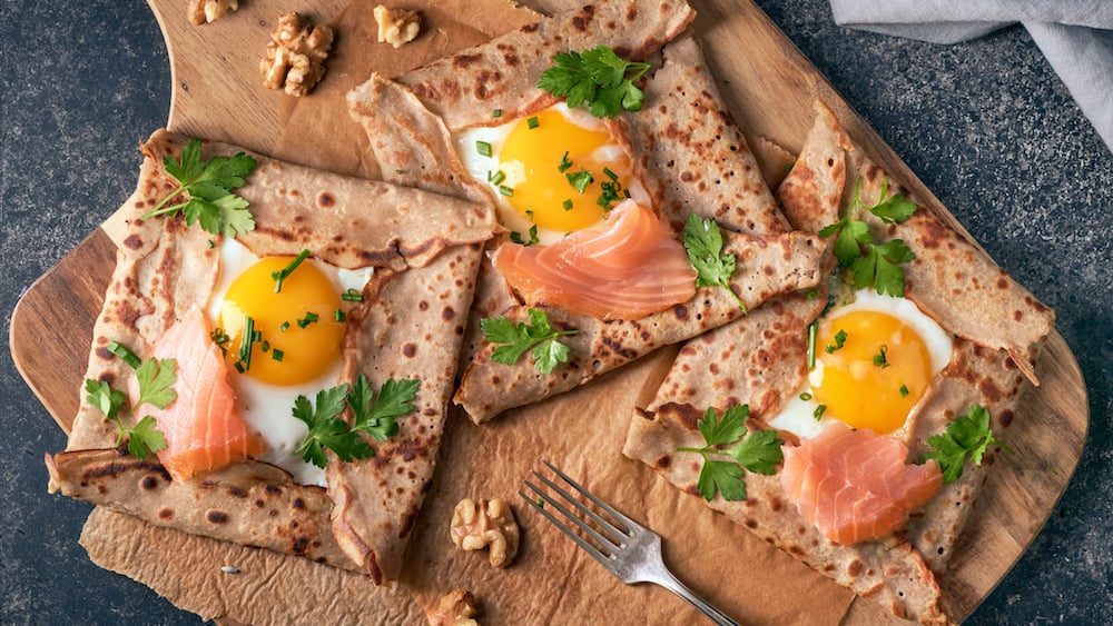 - Pilih hidangan laut seperti galette au saumon (pancake salmon) atau moules-frites (kerang dan kentang goreng) yang lebih aman.